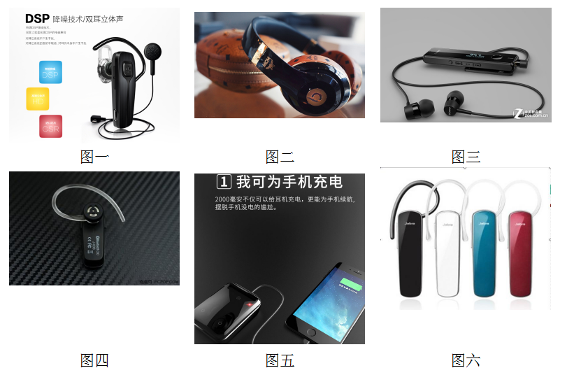 部分藍牙耳機示例如圖所示: